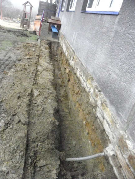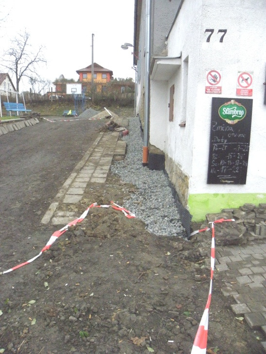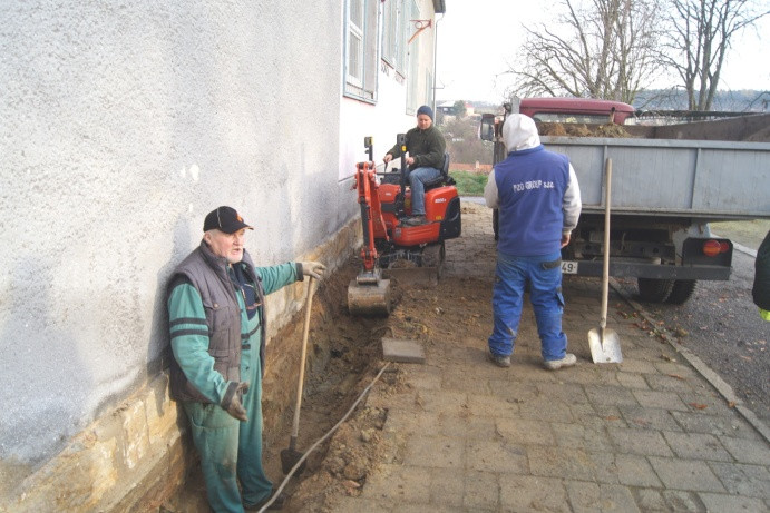 Vzhledem k tomu, že tyto prostředky musely být vyčerpány do konce roku 2017, pracovalo se nepřetržitě i s naší výpomocí až do Vánoc. Tak jak to bývá u těchto akcí, vyskytly se skryté vady, jako popraskaná stará kanalizace a poškozené základy budovy. Přesto se podařilo tyto závady odstranit a dokončit celkovou izolaci budovy. Vzhledem k nástupu mrazů, nebylo možné dokončit zemní úpravy a části chodníku. Tyto práce budou dokončeny v dubnu 2018 z našich prostředků. Jak je patrno z fotografií, nebyla to práce jednoduchá, ale dílo se zdařilo. Děkujeme všem, kteří se na této akci podíleli a zejména za velkou podporu Jihomoravskému kraji.