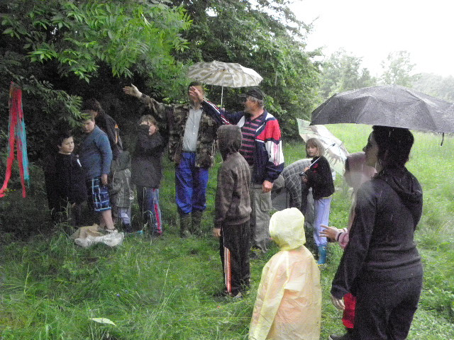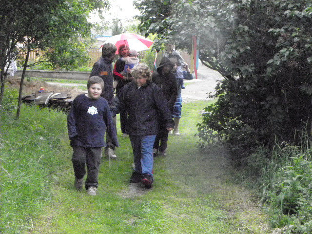 Bohužel hned po startu ve 14:00 hod. začalo pršet a tak jsme všichni promokli. Akce se zúčastnilo pouze 18 dětí, které měli za úkol najít tři poklady permonů Františka, Kuklína a Baliňáka. Na třech kontrolních bodech museli děti odpovědět na několik otázek z historie dolů a Padochova. Jejich putování skončilo nalezením pokladů v Zadní skále. Poděkování patří Majce Chaloupkové a jejímu týmu za organizaci a p. Musilové z Havírny za "bonbonové poklady".