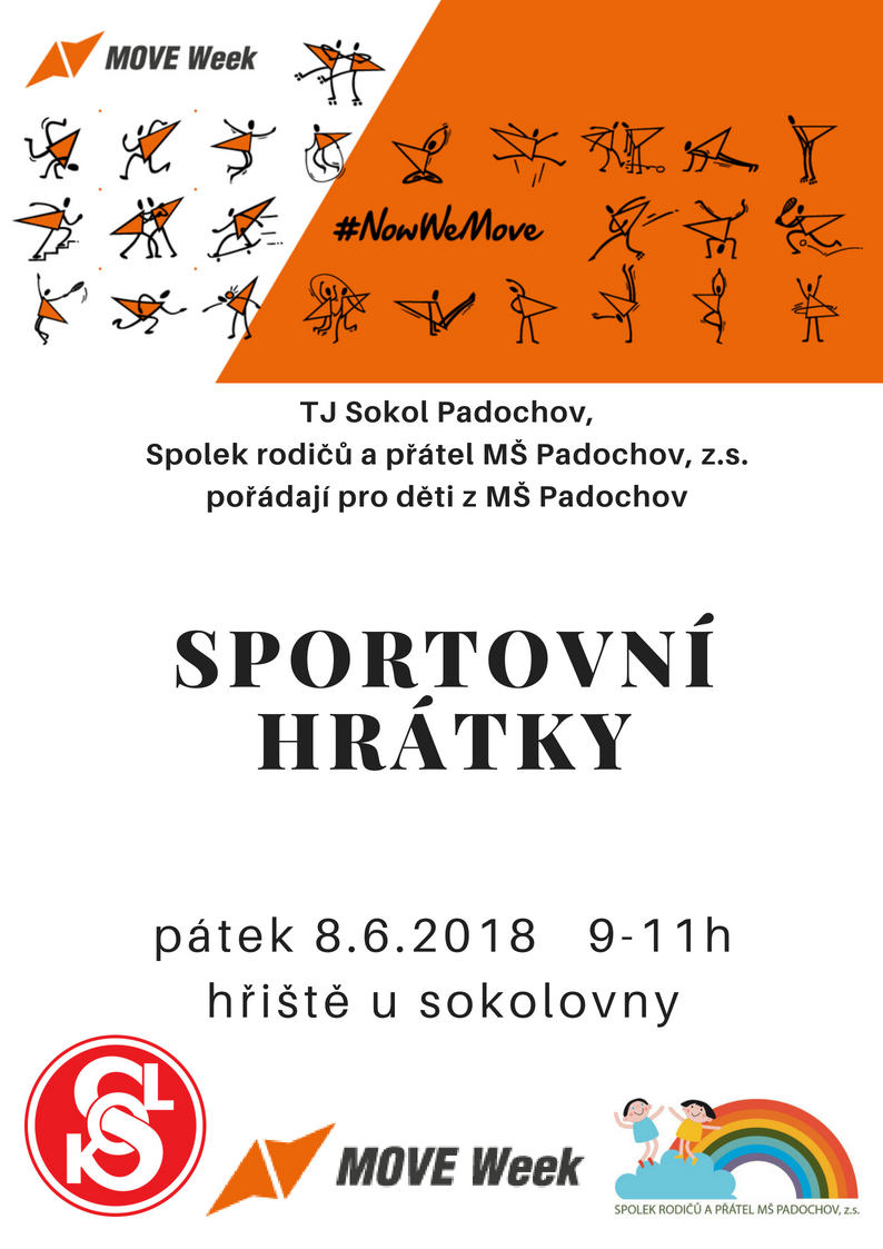 V pátek 8. června 2018 pořádáme, v rámci celosvětové akce Move Week, sportovní dopoledne pro děti z mateřské školky. Děti si zasoutěží v několika disciplínách.