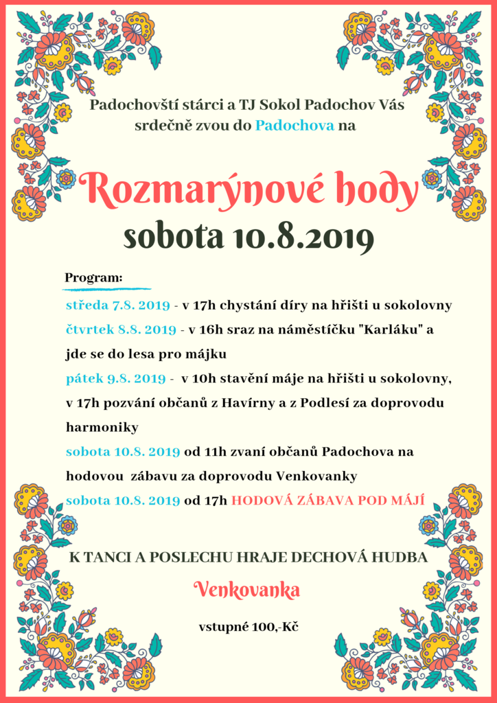 Zveme Vás v sobotu 10.8.2019 v 17:00 na hodovou zábavu pod Májí. Bude se hodovat, tancovat, pít a zpívat za doprovodu Venkovanky.
