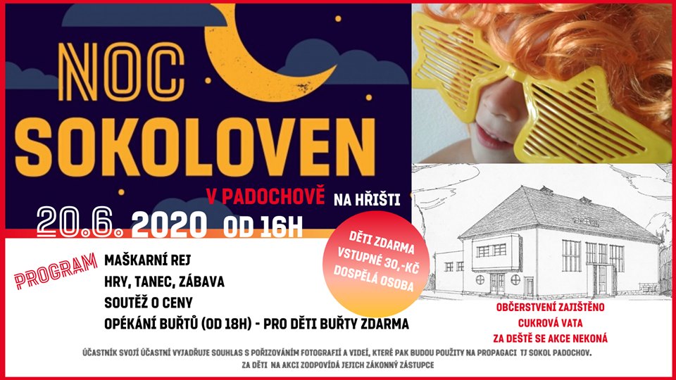 Zveme všechny děti a rodiče Maškarní karneval spojenou s akcí Noc sokoloven. Přijďte si zatancovat, zasoutěžit, vyhrát zajímavé ceny. Večer si opečeme buřtík.