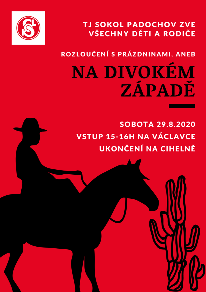Ahoj kluci, holky a rodiče - prázdniny ukončíme tradiční akcí na Cihelně. Tentokráte se budeme loučit jako na divokém západě. Masky a převleky vítány. Těšte se na krásné zážitky v lese od Václavky až na Cihelnu - v sobotu 29.8. 2020. Těšíme se na vás.