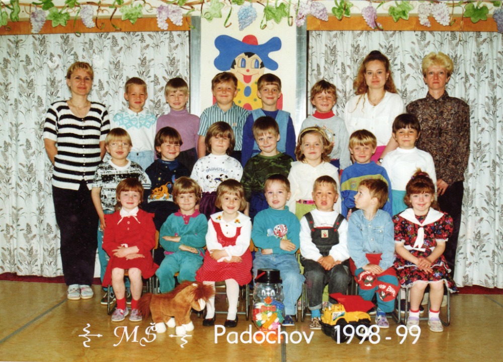 Za svou práci dostávala měsíčně 250 Kč a denní úvazek byl 6 hodin. Vzhledem k tomu, že hračky vyrobené maminkami byly velmi zdařilé, uspořádala MŠ na podzim výstavku těchto prací. V roce 1947 bylo MŠ v Padochově přiděleno 10 000 Kč na vnitřní vybavení školky. Ve školním roce 1947-48 bylo přihlášeno 21 chlapců a 14 děvčat. 1.9.1948 odchází ze zdravotních důvodů opatrovnice pí Vrbasová, kterou nahrazuje pí Zdena Pokorná za měsíční plat 600 Kč. V ročníku 1948-49 je ve školce 16 chlapců a 16 děvčat. V tomto roce se provdala učitelka Hajdová a přijala jméno Sehnalová. V ročníku 1949-50 je ve školce 30 dětí. 8.9.1949 podává žádost o přeložení do Brna učitelka Sehnalová. Nutno podotknout, že tato první učitelka v naší školce byla velmi svědomitá a oblíbená a vykonala velký kus práce při vybudování této školky. Od 1.3.1950 střídá paní Pokornou nová opatrovnice pí Božena Ryšavá a přichází nová učitelka 40 Jiřina Nekužová rodem ze Zbýšova. V roce 1950 se opět zapojuje ústřední topení, které bylo z úsporných důvodů ve válečných letech odpojeno. V roce 1952-53 je ve školce 32 dětí a tento školní rok učí pí Božena Sojková. Do ročníku 1953-54 se 34 dětmi nastupuje pí Milada Hauserová. V roce 1956-57 byly zbudovány splachovací záchody a umývárna. Od 1.1.1958 nastupuje nová pomocnice pí Helena Růžová. Ve školce je v této sezóně 32 dětí. Učitelka M. Hauserová působí na této školce spolu s p. Helenou Růžovou do roku 1969 (foto). Za tuto dobu „prošlo“ pod jejich rukama 464 dětí. Nejsilnější ročník byl 59-60 a to 35 dětí, nejslabší 67-68 21 dětí. V roce 1969 nastupuje zástupkyně pí Vyhnalíková, která je zde s pí Růžovou do roku 1973. Školní rok 1973-74 je zahájen novou učitelkou pí Emílií Bendlovou s novou pomocnicí Janou Klímovou. V roce 1974-5 jsou pro potřebu školky vyrobeny prolézačky a kolotoč na sokolovně a je zakoupen nový radiopřijímač. Na krátkou dobu od 1.9. do 17.10.1983 učí na MŠ p. Marcela Slaninová ze Zbýšova. Po ní přichází 17.10. Eva Rozmarinová ze Zastávky, která zde učí i v ročníku 1984-85. Ročník 85-86 zahajuje Marcela Slaninová, kterou střídá 1.11.1986 Ivana Vařejková z Padochova. V tomto roce dochází k uzavření Základní školy a tak se MŠ stěhuje do 1. patra a zahajuje celodenní provoz. 3.3.1989 se stává ředitelkou MŠ Jana Němcová, která zde učí s učitelkou Marií Chaloupkovou. Tato dvojice zde působí do 1.5.1991, kdy se vrací po mateřské dovolené pí ředitelka Ivana Vařejková. Na místo učitelky přechází Jana Němcová. Tuto učitelku střídá v ročníku 94-95 Alena Schneiderová a to na poloviční úvazek do konce ročníku 95, kdy nastupuje Marie Chaloupková, která zde působí do 13.1.1999. Na její místo nastupuje Jana Požárová ze Zbýšova. Ve školních ročnících 2001-2007 se u vedoucí učitelky Ivany Vařejkové střídají Dana Ondráková a Hana Janderková, obě na poloviční úvazek. Od roku 1989 do dnešního dne vykovává práci školnice p. Marie Janíčková z Padochova.