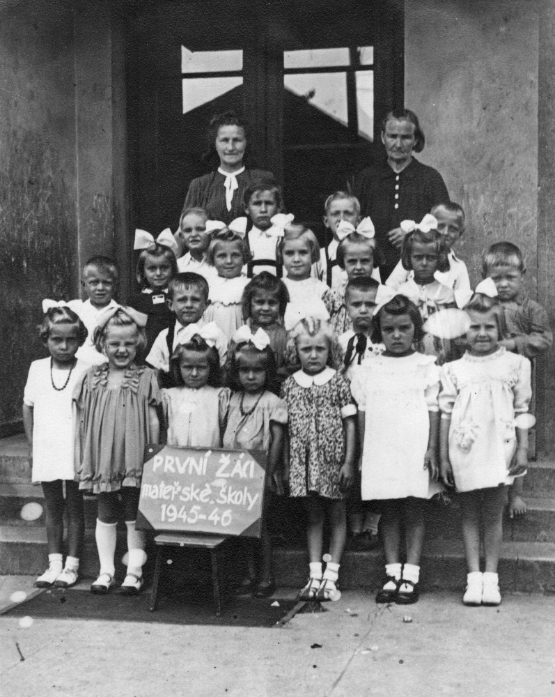 Dekret obdržela učitelka Ludmila Hajdová z Dolní Bečvy s nástupem 1.2.1946. Poněvadž se již vědělo, že školka bude otevřena, připravily maminky mnoho krásných hraček, které pak předaly do MŠ. Otevření MŠ se zúčastnili učitelé, maminky s prvními žáčky a několik občanů. Děti seděly za kulatými stolky na malých židličkách, které pořídil důl Kukla. MŠ otevřel a předal předseda MNV Jan Sobotka. Do školky bylo zapsáno 28 dětí z ročníků 1940-41. Poněvadž práce s dětmi v MŠ je poněkud odlišná od práce v obecní škole, měla učitelka k ruce ještě opatrovnici a školnici pí Boženu Vrbasovou, manželku školníka z obecní školy (foto - první žáčci).