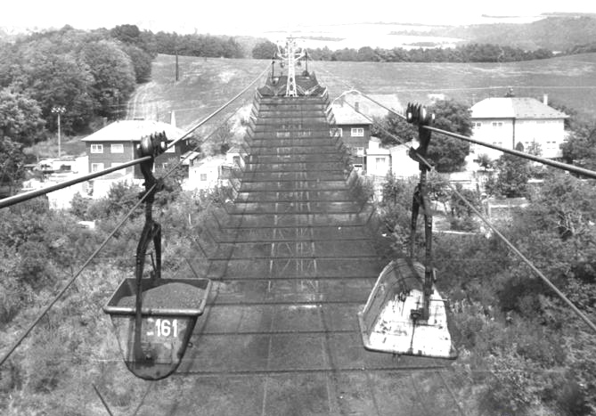 Při pohledu na dnešní snímky si zavzpomínáme na lanovou dráhu - lanovku ze Zbýšova do Oslavan.