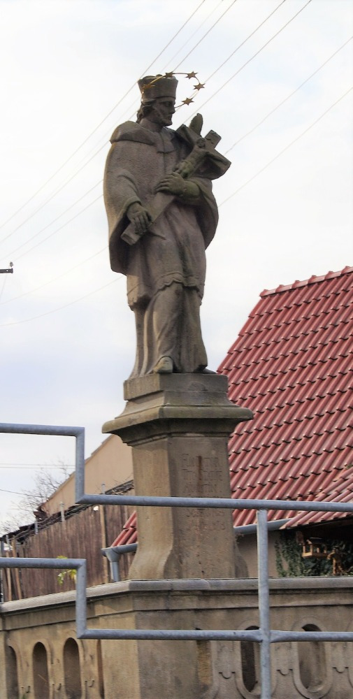Sochy: Uprostřed obce je postavena socha svatého Jana Nepomuckého: Tato byla v roce 1995 restaurovaná. Zahrádka o rok později.. V dřívějších dobách, v týdnu kolem jeho svátku (16. května) se scházeli místní občané různého věku kolem této sochy, kde se modlili a také se zde zpívalo. Krásný zpěv bylo slyšet až ke Zbýšovu. V době první republiky měla socha namále. Radní Tomáš Krásný prosazoval, aby se socha přemístila na Konvíz. Samozřejmě vyvstala vlna odporu a socha zůstala na místě. Celý soubor je opět krásné dílo neznámého kameníka. Je na ní napsáno: Fundator Teto statuje Aukustin Čerwinka suseda v NRO 3 Ano 1818 (zakladatel této sochy Aukustin Cerwinka, občan z číslo 3. Roku 1818).
