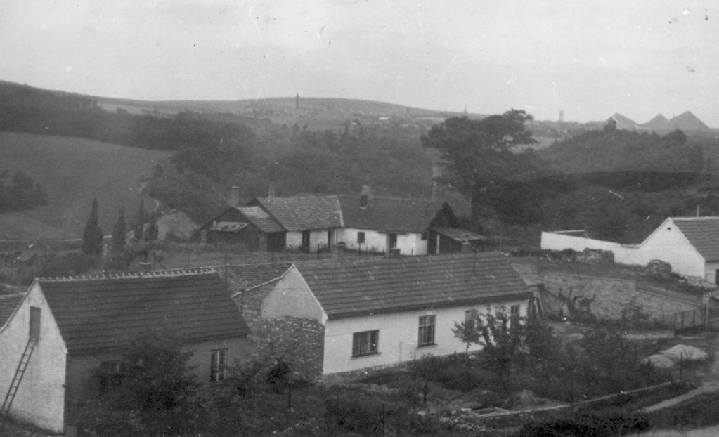 Další snímky jsou již téměř ze současnosti. Za zmínku stojí pár slov o stromu za domem. Dnešní koruna tohoto pajasanu není již tak bohatá, protože strom je již velmi starý a větve se lámou. Na téměř třímetrovém obvodu kmene jsme objevili vyrytý monogram V.V. 1857. V levém domku bydlela rodina Svobodova. Dnes zde žijí jejich potomci Jordánovi a Sawillovi. Uprostřed bydleli Šimonovi a dnes zde bydlí manželé Rudolf a Věra Viskupovi. V domku napravo bydleli Zemskovi a dnes zde bydlí vnuk Jan Strnadel s rodinou.