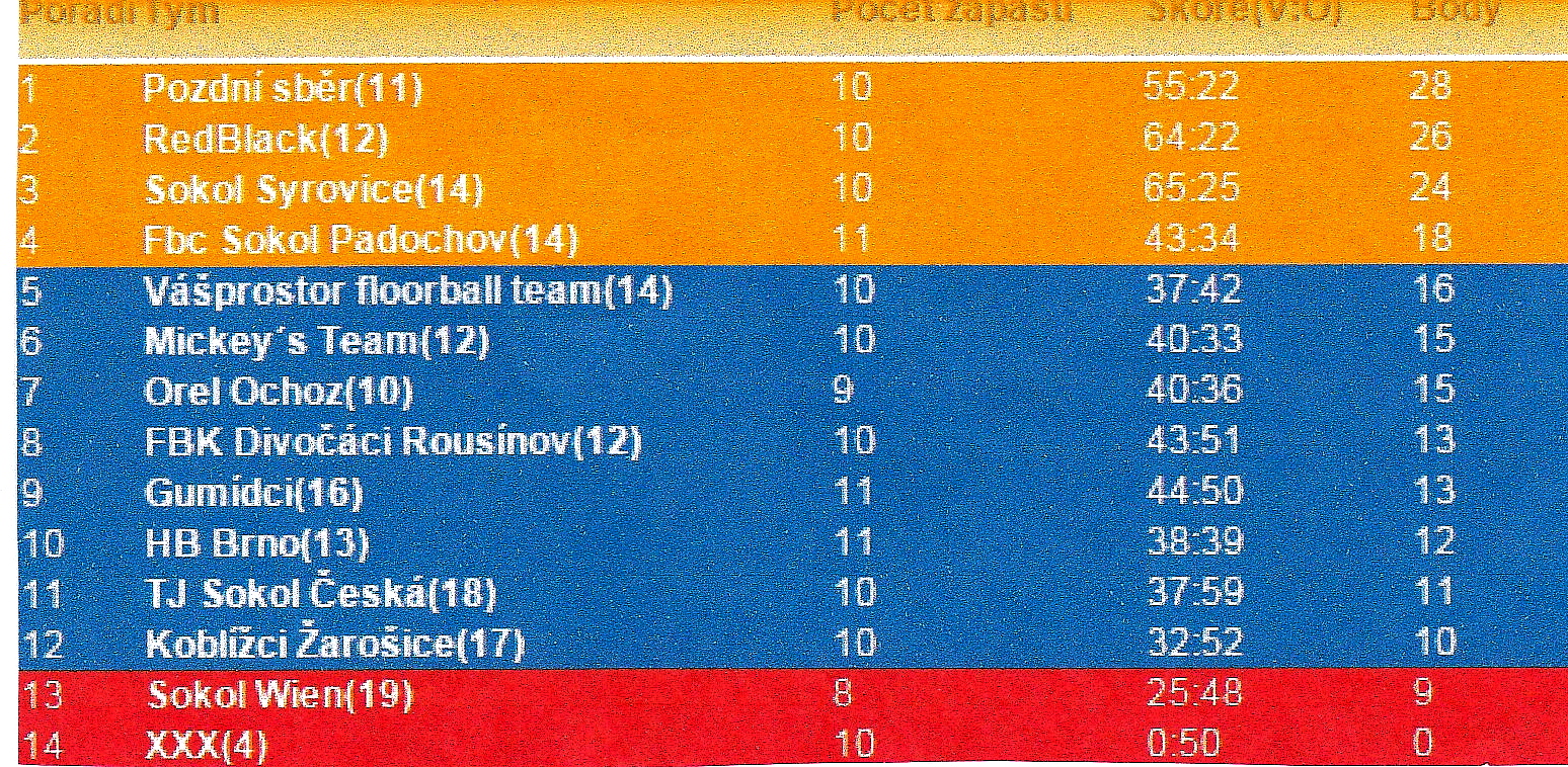 Fbc Sokol Padochov - Lev Blažovice (1:2, 3:3) 4:5. Body - Fojta (2+0), Čermák (1+1), Šabata (1+0.), Adam L. (0+1), Bula (0+1), Hrabina (0+1).