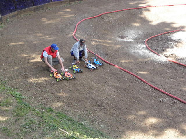 To, že i mladí dokáží ovládat tyto modely, nám ukázali v nedělním souboji. Na snímku vidíte vítěznou trojici a jak se u závodů patří s Rychlými špunty. Nyní mám schází "doladit" některé drobnosti kolem dráhy a již se budeme těšit na další akci s rychlými modely v přírodním prostředí a dobrým občerstvením.