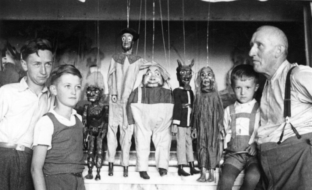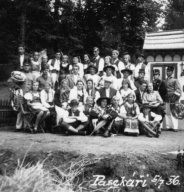 Na snímcích vidíte p. Machulky v kroji a jediná zachovalá fotka s jeho loutkami a vnuky. Bohužel veškeré loutky byly po zrušení Sokola v 60 létech rozkradeny !!!